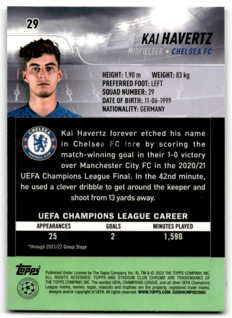 2021-22 Stadium Club Chrome UEFA Champions League #29 Kai Havertz