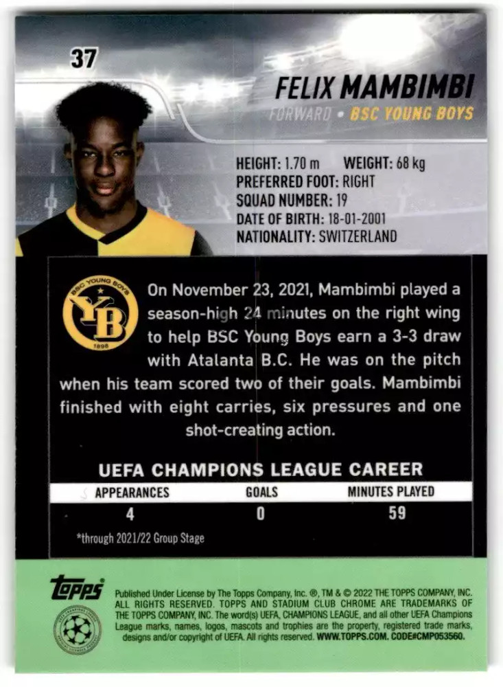 2021-22 Stadium Club Chrome UEFA Champions League #37 Felix Mambimbi