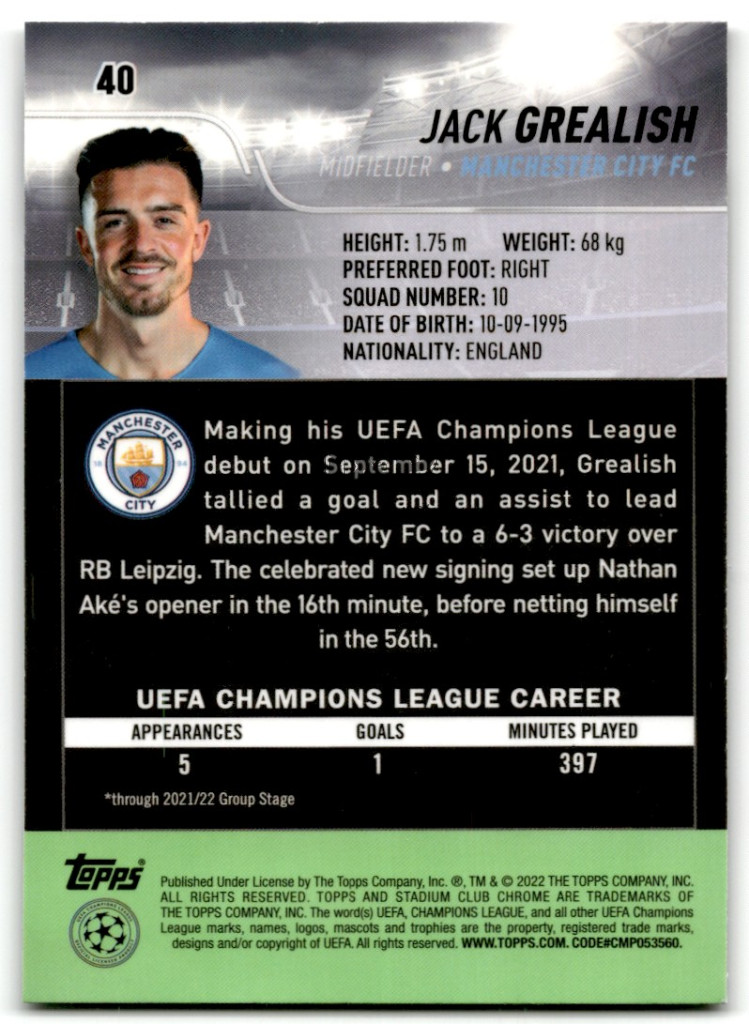 2021-22 Stadium Club Chrome UEFA Champions League #40 Jack Grealish