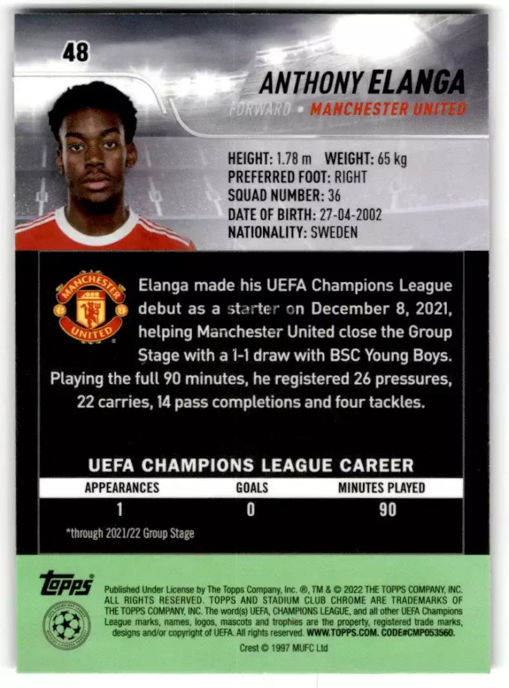 2021-22 Stadium Club Chrome UEFA Champions League #48 Anthony Elanga