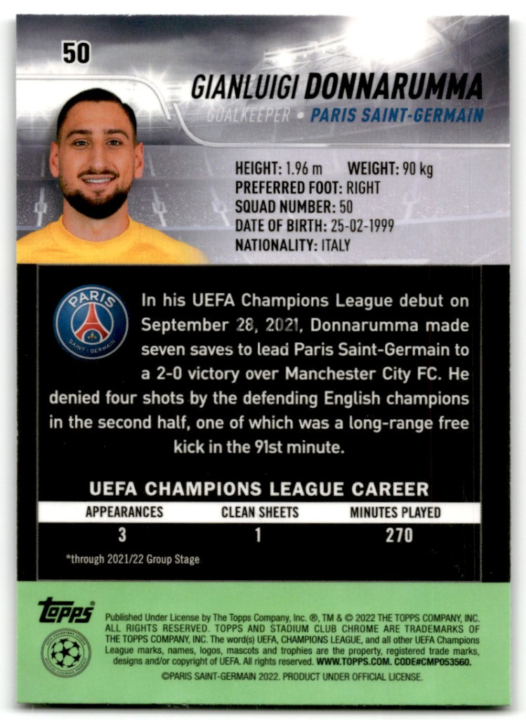 2021-22 Stadium Club Chrome UEFA Champions League #50 Gianluigi Donnarumma