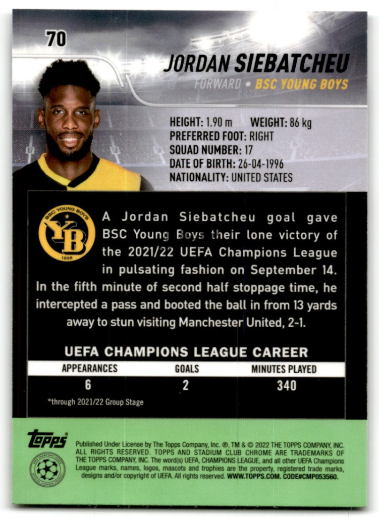 2021-22 Stadium Club Chrome UEFA Champions League #70 Jordan Siebatcheu