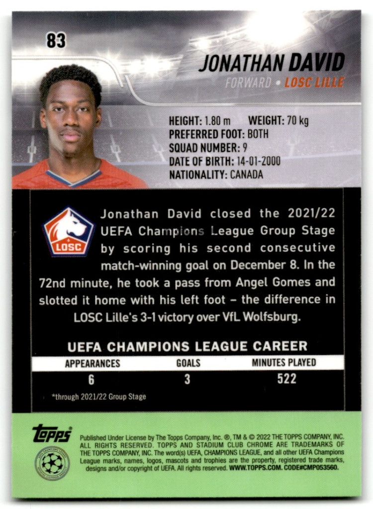 2021-22 Stadium Club Chrome UEFA Champions League #83 Jonathan David