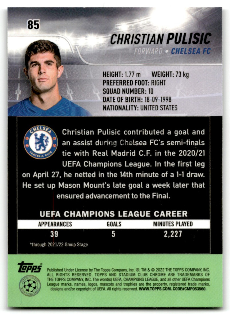 2021-22 Stadium Club Chrome UEFA Champions League #85 Christian Pulisic