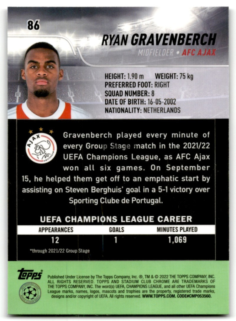 2021-22 Stadium Club Chrome UEFA Champions League #86 Ryan Gravenberch