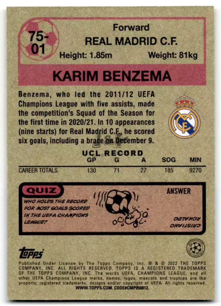 2021-22 Topps UEFA Champions League '75-76 Footballer #7501 Karim Benzema