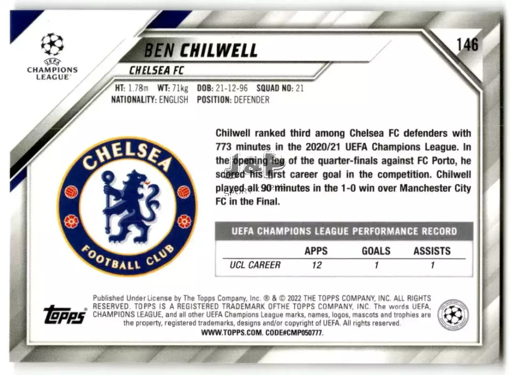 2021-22 Topps UEFA Champions League #146 Ben Chilwell