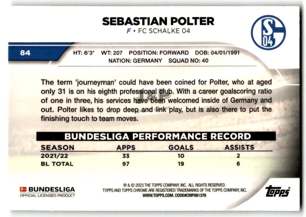 2022-23 Topps Chrome Bundesliga #84 Sebastian Polter