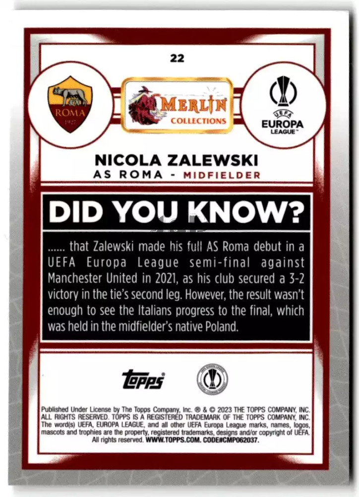 2022-23 Topps Merlin UEFA #22 Nicola Zalewski