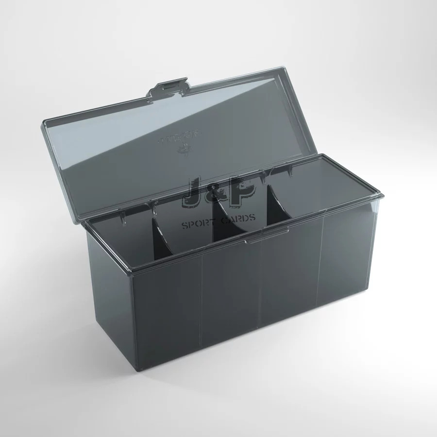 Teljes paklik, dobókockák, tokenek vagy akár 320 dupla tokos kártya – rengeteg mindent képes tárolni és megvédeni a Fourtress! Ez a masszív doboz 5 különböző félig átlátszó színben érhető el, így a tartalma könnyen azonosítható. A beépített zár biztonságosan zárva tartja, míg a két belső elválasztó eltávolítható, hogy nagyobb rekeszeket alakíthass ki. A dobozok egymásra rakhatók, így utazáshoz is ideálisak, és otthon is kiváló tárolási megoldást nyújtanak.